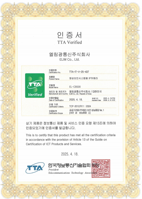 국내산 제조 및 관리를 통한 품질 확보 및 TTA 인증 보유